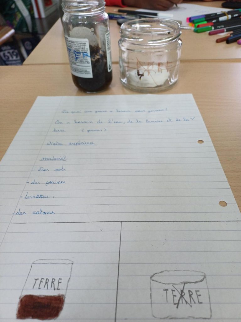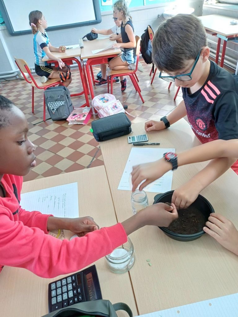 La semaine dernière, les élèves ont émis leurs hypothèses et ont listé le matériel à apporter pour réaliser l’expérience. Vendredi, ils ont planté leurs graines. Résultats dans quelques jours !