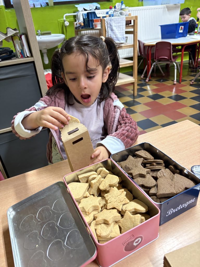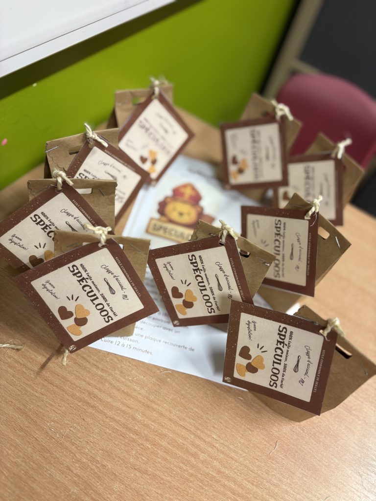 Après la cuisson, dernière mission …. compter 4 spéculoos à glisser dans un sachet pour papa et maman… Ils ont dégusté le reste pour la collation 😃