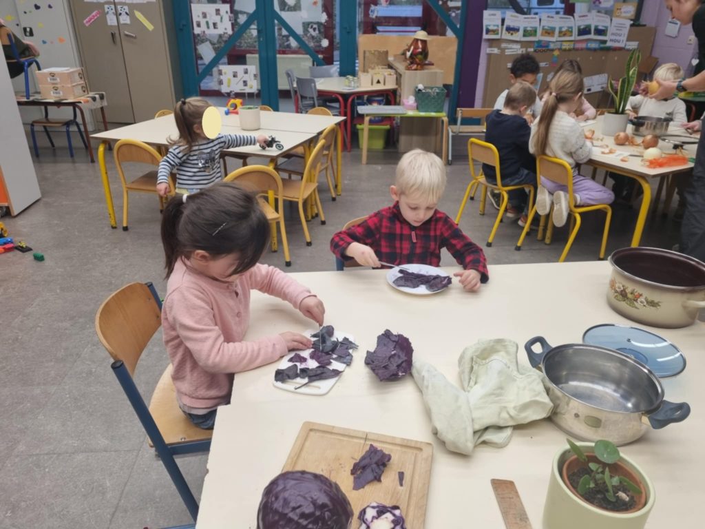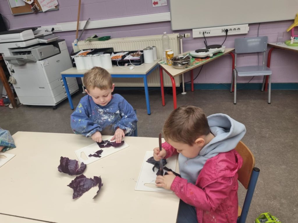 - Fabrication de peinture naturelle avec du chou rouge, des oignons, avec et sans vinaigre ou bicarbonate. Utilisation de cette peinture