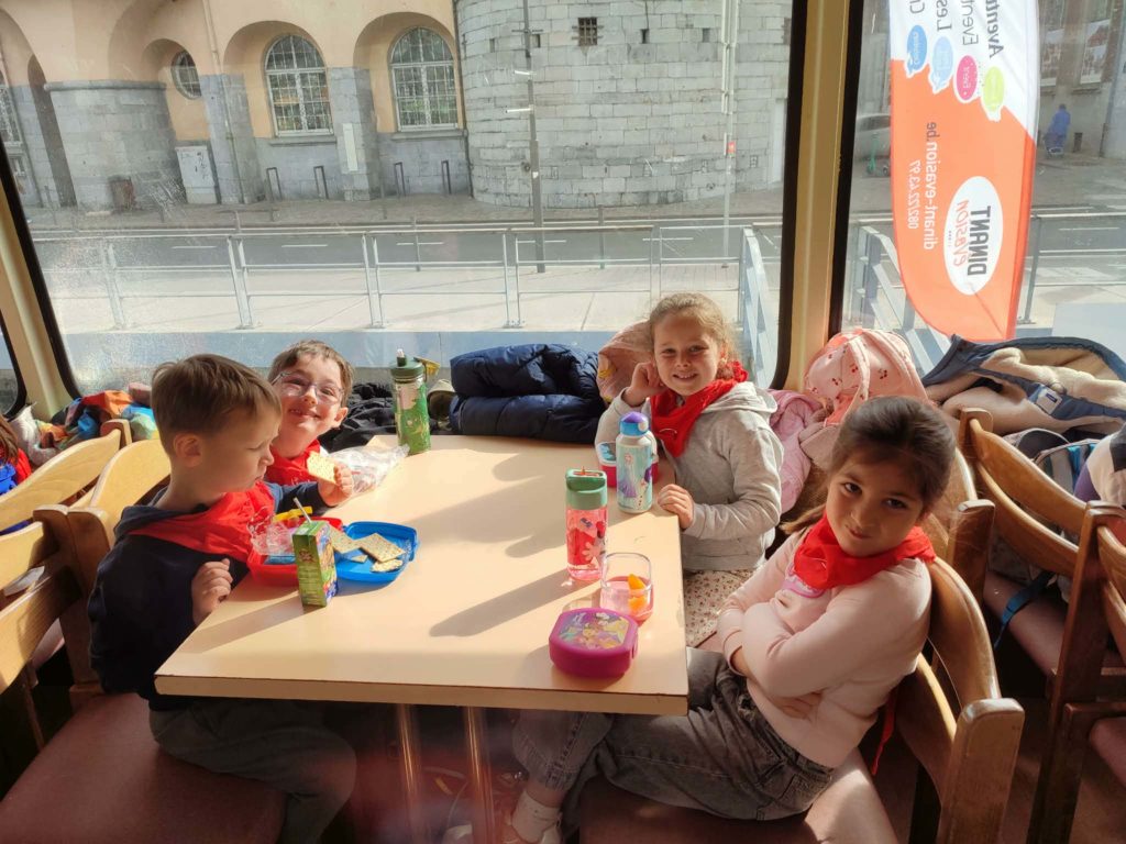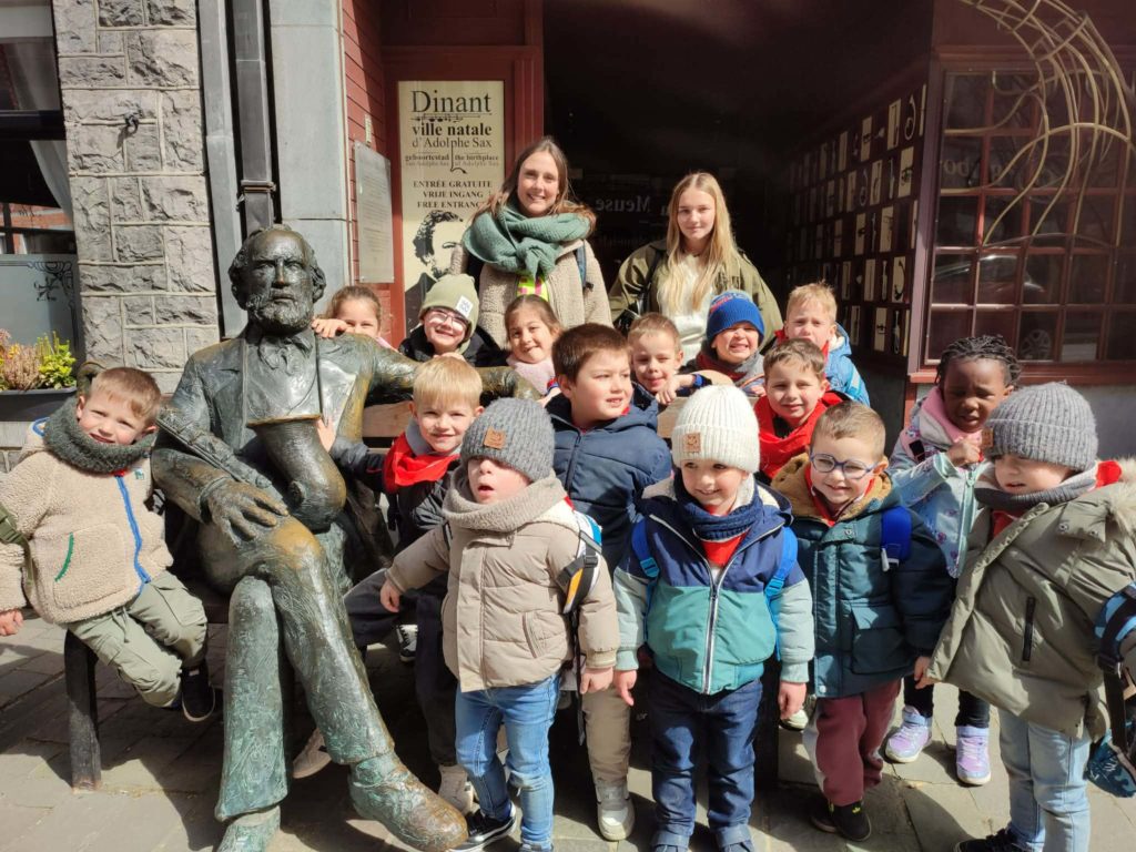 Dans le cadre du projet pédagogique de notre école, les élèves de maternelle se sont rendus à Dinant. Ils ont pu réaliser une croisière en bateau et ils ont visité à la maison de la pataphonie. Ils sont également passés voir les saxophones.